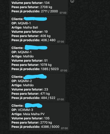 Acompanhe as ordens de produção em andamento diretamente do seu WhatsApp